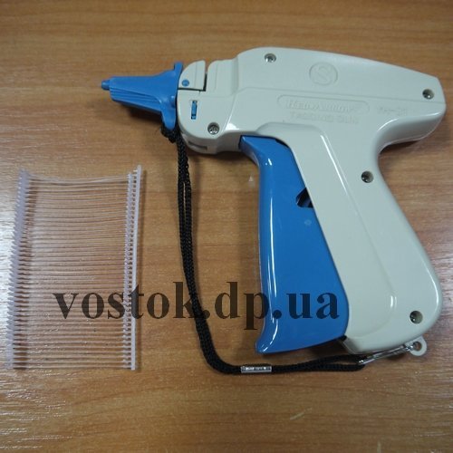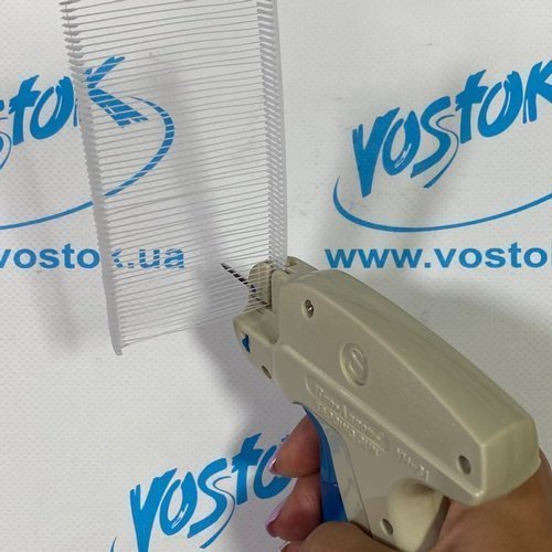 После прокола ткани нажимается рукоять, через бирку и ткань продевается пластиковая стяжка. Пистолет отводится от продукции и стяжка отрывается от общей упаковки.