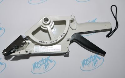 Аппликатор TOWA APN-60 — это устройство пистолетного типа для наклеивания этикеток на поверхность товаров или упаковок. Механический пистолет-аппликатор относится к категории ручного оборудования. Принцип его работы предельно прост: с помощью нажатия на рукоятку пистолета механизм протяжки подложки приводится в действие, в передней части аппликатора подложка изгибается под углом, в этот момент этикетка отделяется от подложки. При этом, длина протяжки ограничивается механическим датчиком. Работа механики построена таким образом, что часть этикетки (примерно 3-5 мм) остается на подложке, и этикетка полностью не отделяется, а удерживается в аппликаторе. Для полной наклейки этикетки необходимо провести резиновым валом по поверхности упаковки или товара.