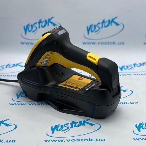 Беспроводной сканер PowerScan PBT9100 (PBT9100-RB) считывает 1D штрих-коды. Идет в комплекте с USB кабелем (CAB-433) и базовой станцией (BC9030-BT) с блоком питания.
