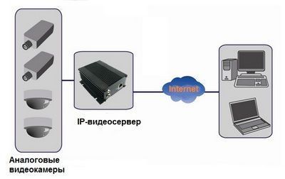 Схема видеонаблюдения с помощью IP-видеосервера.