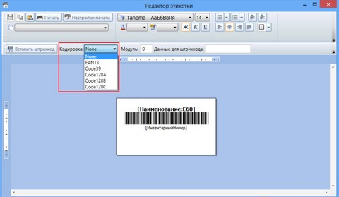 - редактор етикеток для налаштування шаблону етикетки основного засобу;