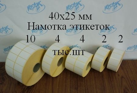 Термоетикетка стандартних розмірів (40х25 мм, 58х40 мм, 58х60 мм) завжди є в наявності.