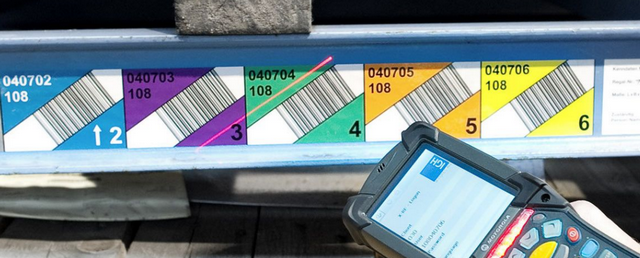 Штрих-коди полиць для багаторівневих стелажів збираються на одній етикетці. Унікальний дизайн з похилими полями штрих-коду гарантує точне зчитування штрих-коду. Випадковий запис сусіднього місця зберігання неможливий.