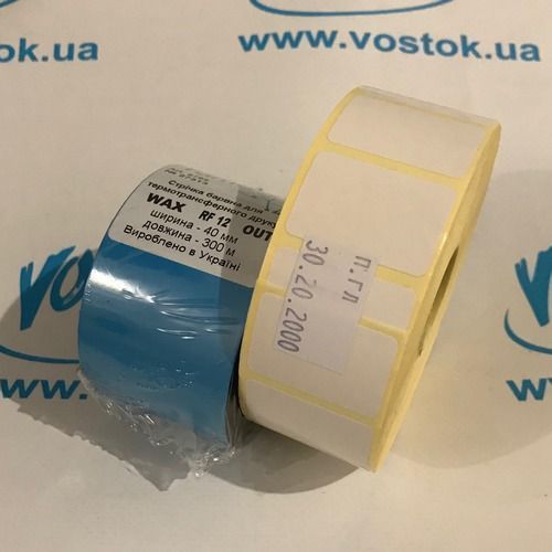 Тип риббона для паперової етикетки — WAX (фарбувальна стрічка на основі воску). Даний вид етикетки слід вибирати для маркування товарів, термін зберігання яких може складати до 3-х років.